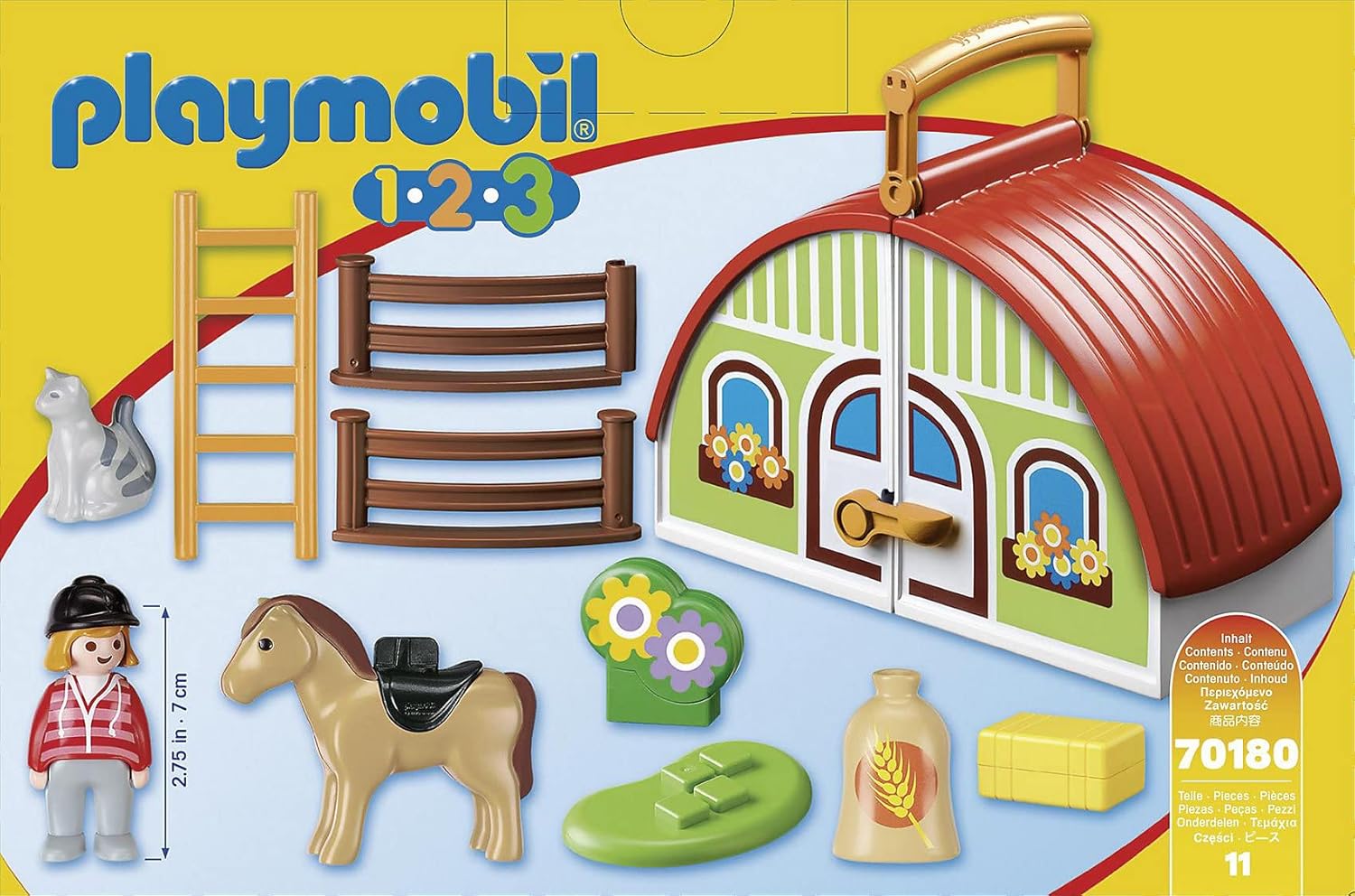 Ideal for children aged 18 months and over, the PLAYMOBIL 1.2.3 toy range helps little ones learn all about different careers and the world around them. The PLAYMOBIL 70180 1.2.3 My Take Along Farm features a 2 storey farm house, which includes a cat and a horse to take care of. The upper level can be reached via the ladder. With the added locking function and carry handle, this playset is perfect for on-the-go fun.