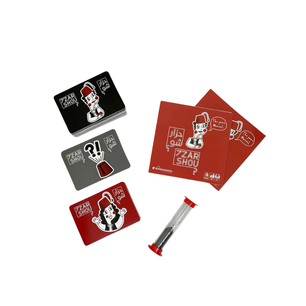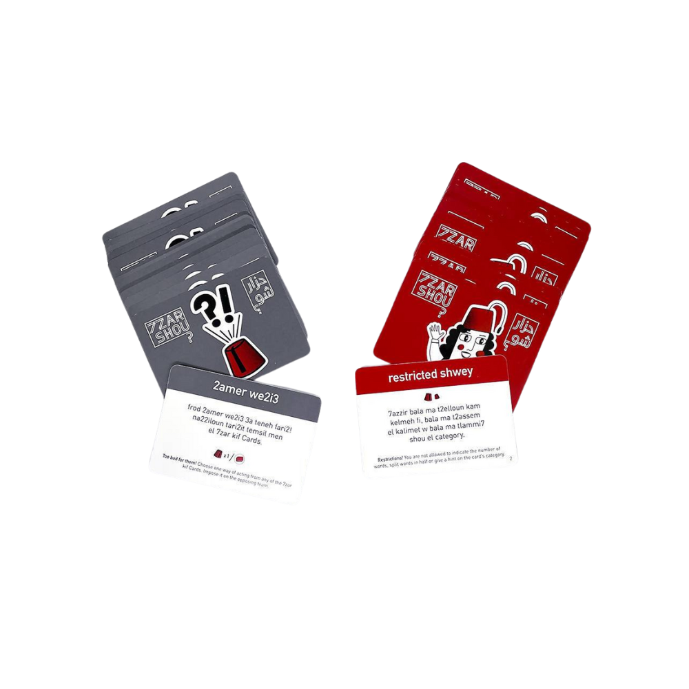 A game of Lebanese Charades with a twist! 7zar Shou is perfect for your next gathering with family and friends. It is jam- packed with everything Lebanese, from expressions to famous songs, locations and food.