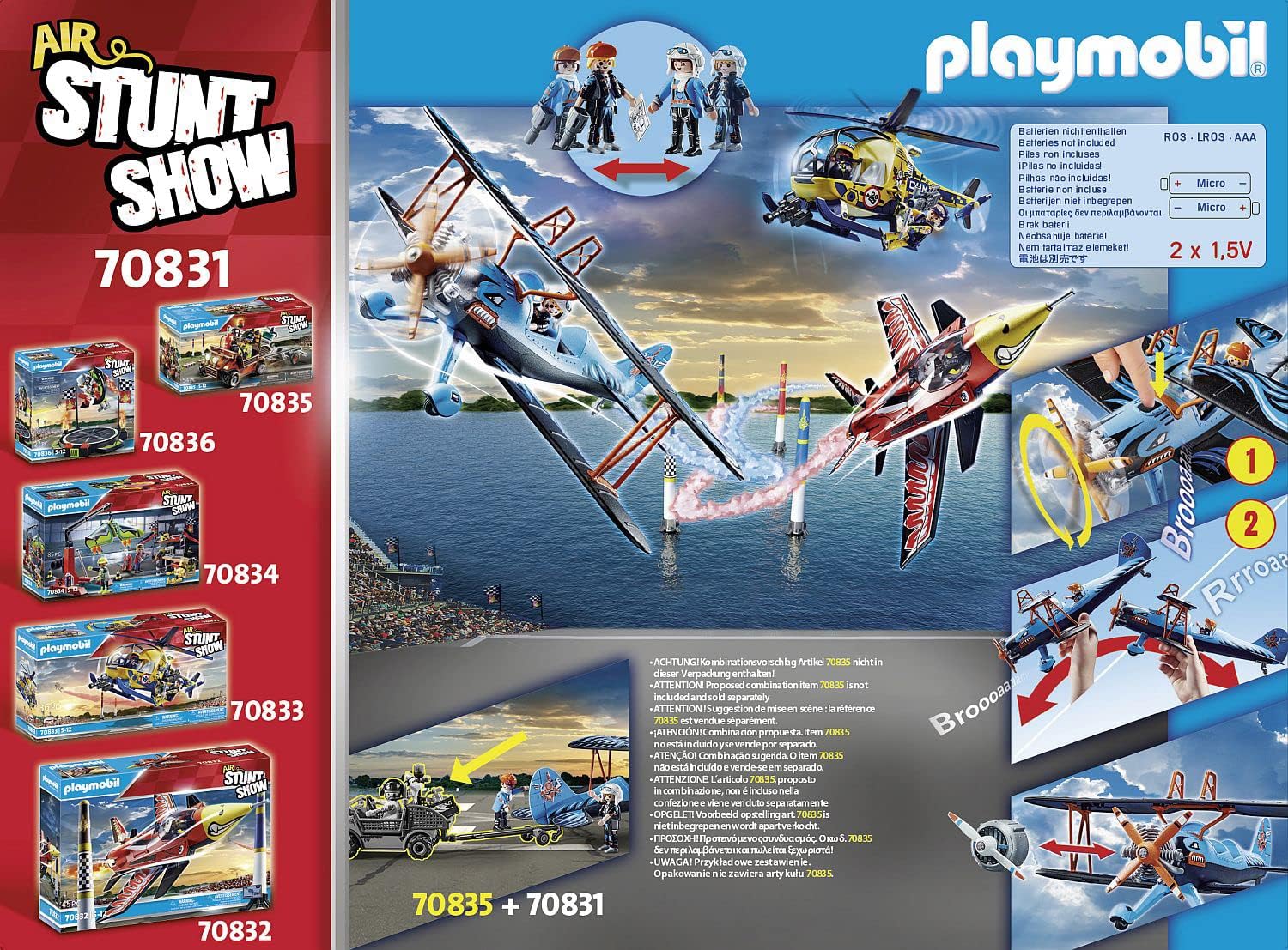 The aerobatics course requires the utmost precision. To successfully complete the course, the PLAYMOBIL pilot must fly the Phoenix biplane around the pylons without touching the obstacles. Meanwhile, the brave PLAYMOBIL stuntman skillfully climbs onto the roof of the plane. With the engine humming loudly and the propeller spinning, the audience looks up into the air with bated breath. Will he manage to pull off the stunt?