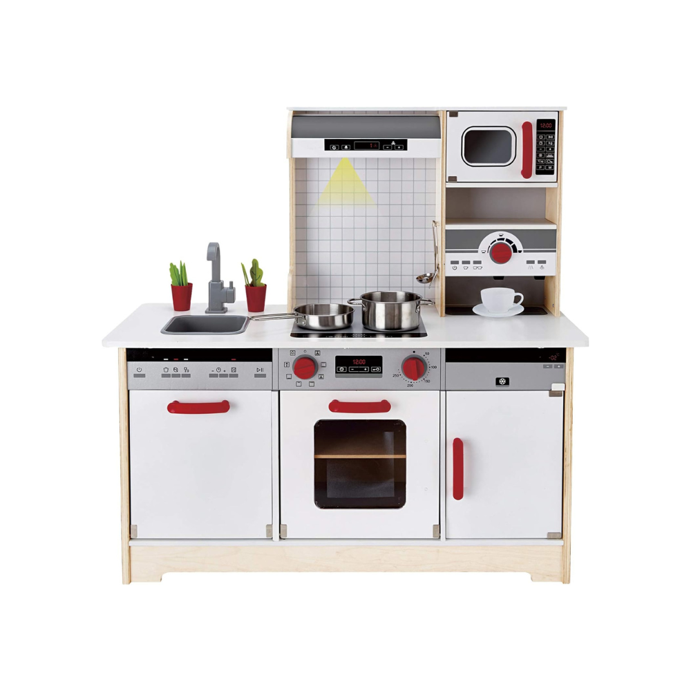 Children will love this multi-functional, All-in-1-Kitchen and its array of charming appliances and features, including a controllable range hood lamp and authentic microwave “ding”. Ask your child to prepare you a nice three-course meal or invite one of their friends over for some role-play fun!