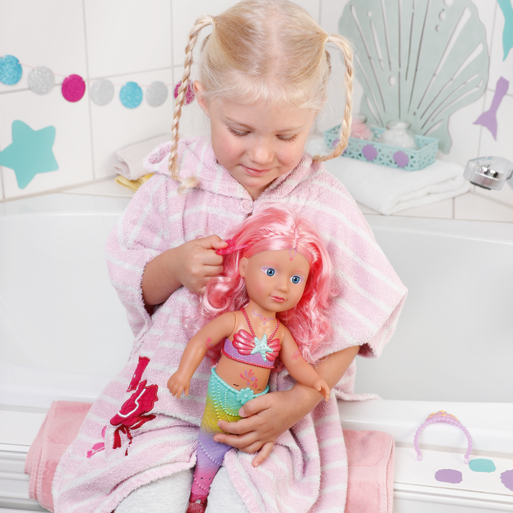 A magical mermaid who makes the perfect bathtime buddy!With real swishing tail and gorgeous long hair to be styled.Each 46cm doll comes with a tiara and shell-shaped comb.Comes in 100% plastic free and fully recyclable, fuss-free packaging.Contents: 1 baby born Mermaid, comb and tiara.