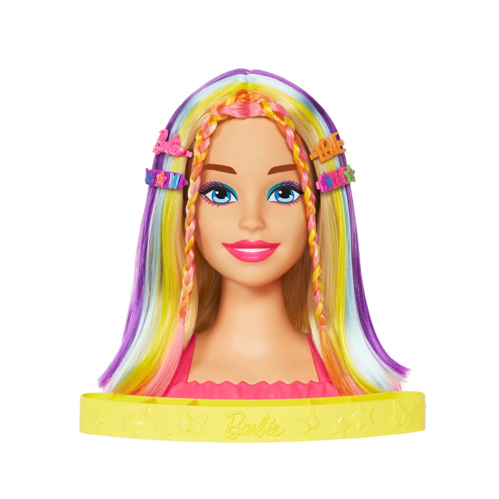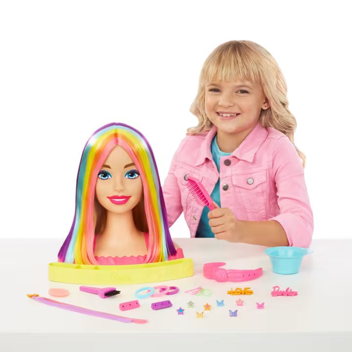 Barbie Deluxe Styling Heads transform any room into a beauty salon! With 22 accessories — including ten color-change features — kids can create countless hairstyles.