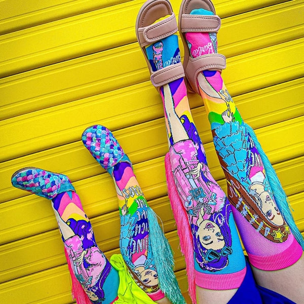Barbie extra fashionista socks always bring stylish vibes. Making any day feel like a red carpet event, these fun silly socks showcase confident style with their extra fancy long tassels and their barbie extra bright colours. These barbie doll socks bring fun and nostalgia to those who wear them!