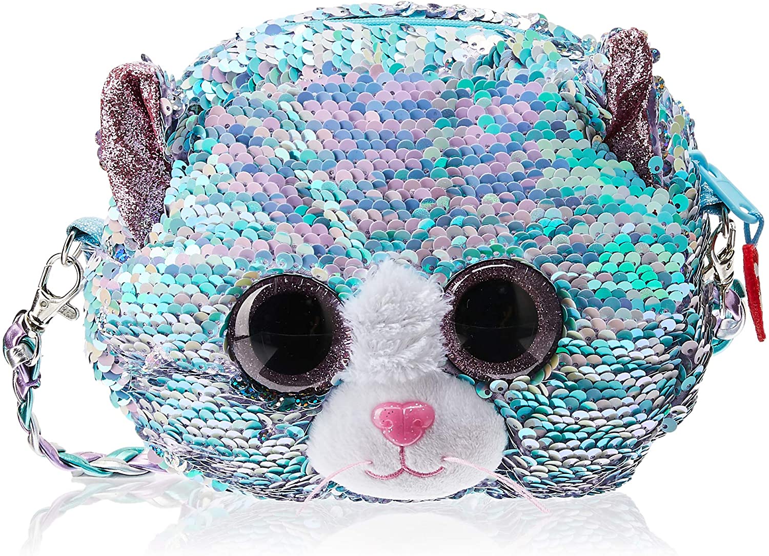 The inner lining is decorated with purple polka-dots on a purple background which makes quite the beautiful scene. The purse has a small pink strap attached to it, which winds around your wrist and keeps your goods safe!