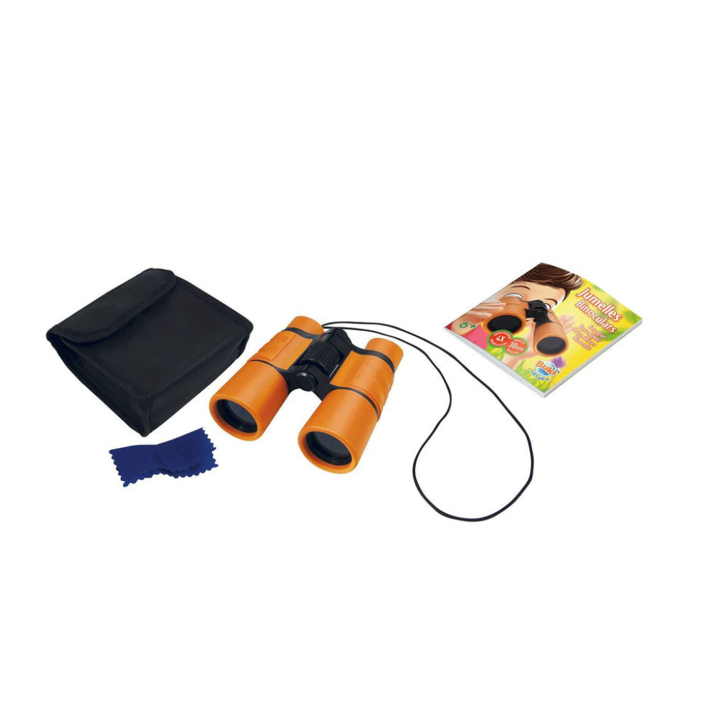 A set of binoculars with 10x 25mm magnification, providing a view that is 10 times larger. Equipped with a focusing ring for sharper images and a non-slip coating for a secure grip. Featuring tinted lenses for more authentic and natural colours. These binoculars are both compact and lightweight. Includes a carrying pouch and a cleaning cloth for maintenance. Comes with illustrated colour instructions containing fun experiments and observations.