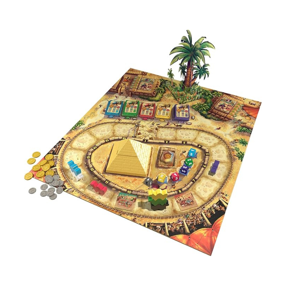 The racing season has ended, and the camels resume their day jobs as they help merchants seek their fortunes. Players need to push their luck at different marketplaces by stacking their caravans full of goods like fruits, vases, and carpets. The more goods they stack, the bigger their reward potential will be. However, they must make sure that they don’t overload their camels and drop a shipment.