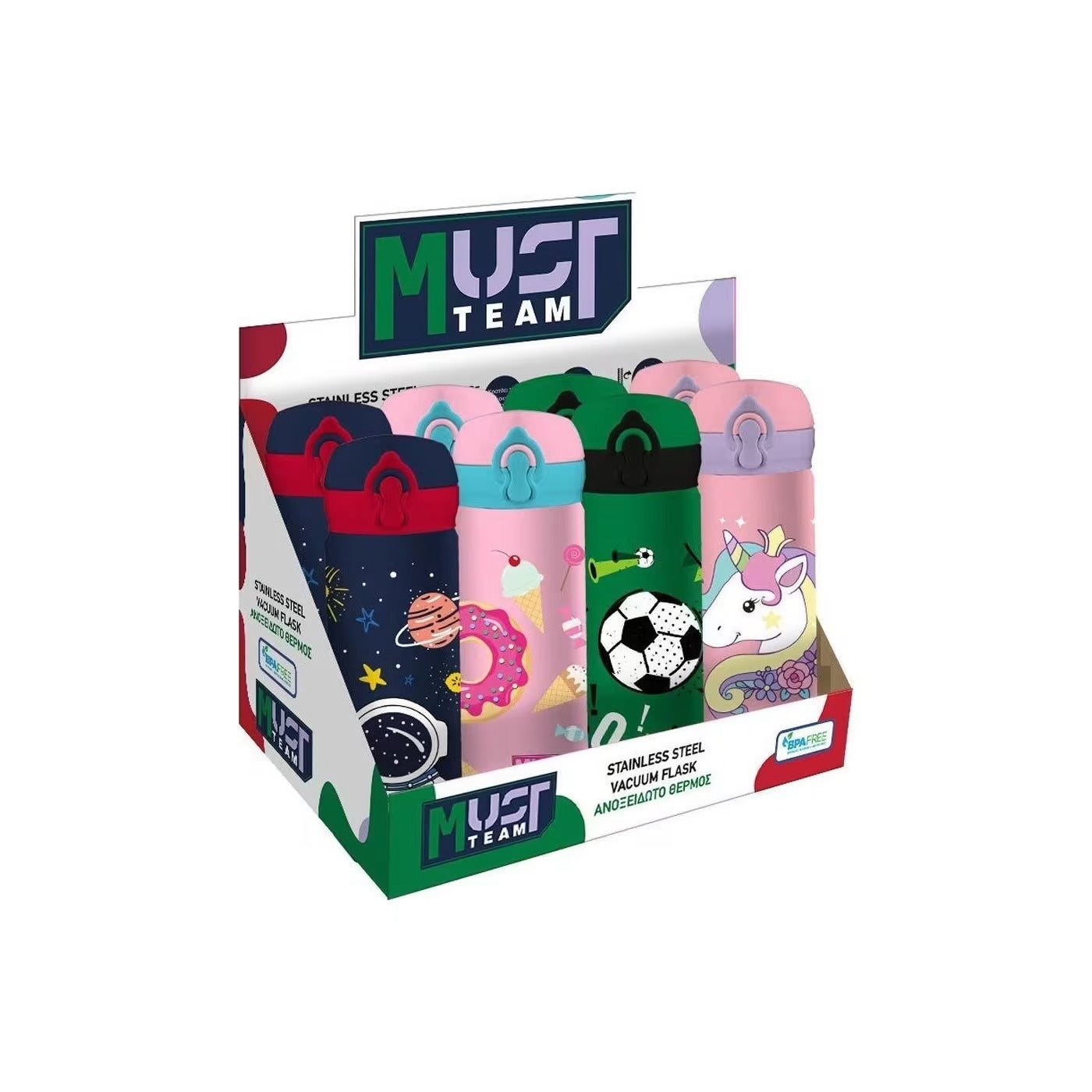 Must Team Stainless Steel Thermos Flask 500 ml with straw, ideal accessory for school and everyday walks.