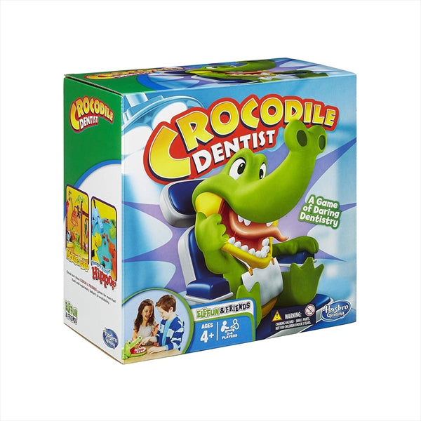 Watch out for the cranky croc’s chompers! This hilarious Crocodile Dentist game challenges you to watch out for Silly Jock Croc’s sore tooth. When you press down on a tooth, he’ll chomp if it’s sore! You lose if he chomps you, but if your daring dentistry is better than anyone else’s, you’ll win!Crocodile Dentist game is croc-chomping fun.Game is easy to set up and play.The winner avoids getting chomped by pressing on his sore tooth.