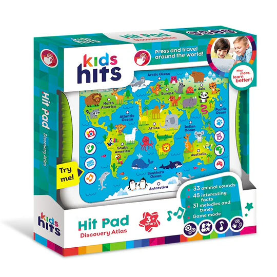 Say goodbye to the struggle of sharing your own devices with your little ones. The Discovery Atlas Hit Pad is here to revolutionize the way your child learns and plays!Our Hit Pad boasts a convenient shape that fits perfectly into your child’s hands, and its bright, unique design features charming animals hand-drawn by a renowned UK artist. Your child will be captivated by the adorable characters, making learning a truly delightful experience.But that’s not all! The real magic lies in the wealth of educational content and captivating games this Hit Pad offers. It’s no wonder that parents around the world are raving about it, making it one of the best-selling toys ever.As your child explores the interactive world of Discovery Atlas, they’ll embark on an educational journey like no other. They’ll discover fascinating facts about the largest animal on Earth and the incredible creatures that can endure the harshest Antarctic cold. These intriguing facts will keep your child entertained and engaged for hours, all while expanding their knowledge in a fun and immersive way.With Discovery Atlas Hit Pad, learning is an adventure, and your child’s curiosity will soar. It’s not just a toy; it’s a gateway to a world of discovery and wonder. Join the ranks of parents who have unlocked the endless possibilities of educational play with the Discovery Atlas Hit Pad. Your child’s journey of exploration begins here!