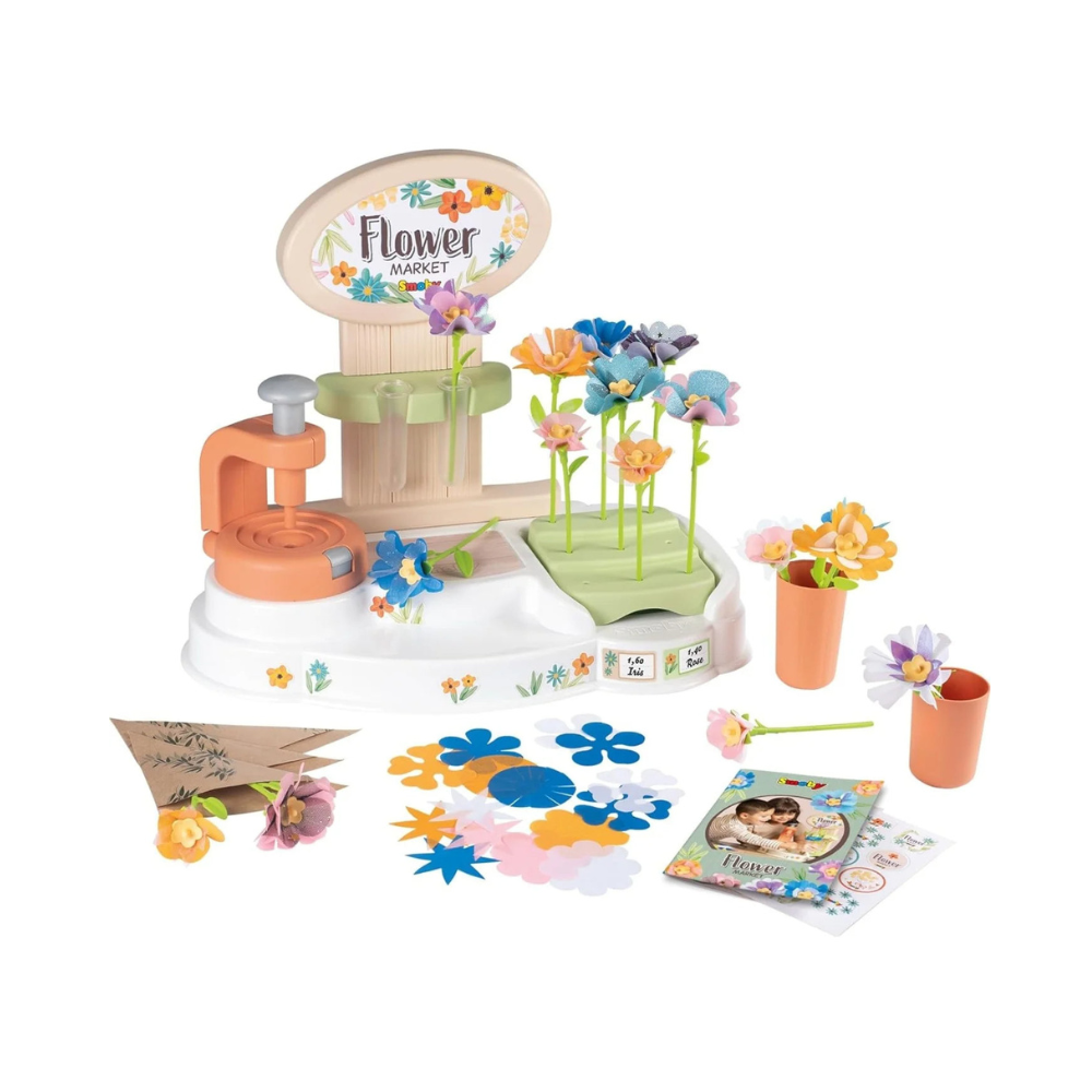 The kit offers a multitude of accessories: 47 fabric flowers, 8 large stems, 8 small stems, 16 peduncles, 16 pistils, 2 vases and 2 transparent tubes. In addition, three cones allow you to package the floral creations, and stickers add a personalized decorative touch. An instruction booklet guides children step by step, making the experience both educational and entertaining