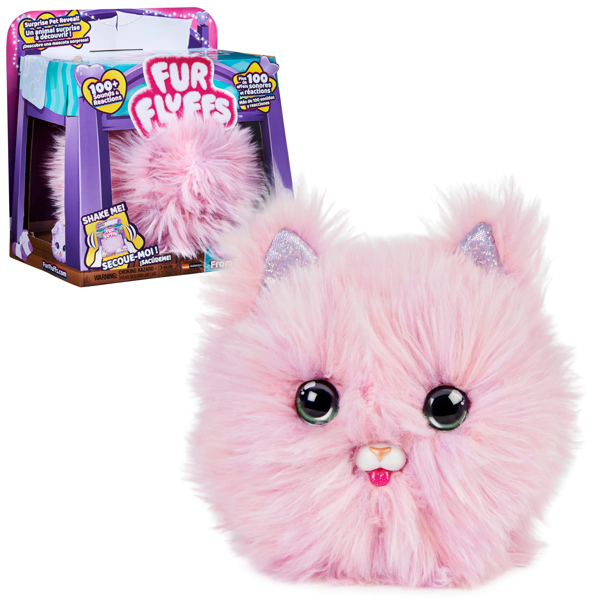 Furfluffs, real hairballs that you have to take care of to see them come to life and discover your pet; take care of your furfluffs to help transform into an adorable pink kitten100 SOUNDS AND REACTIONS – Furfluffs interactive kitten plush toy has over 100 sounds and reactions for hours of play and complicity; ability to adjust the sound volume as desiredCARESSES MODES AND REACTIONS – CARESSES: gently caress your Furfluffs soft toy to hear it purr, caress it as soon as she starts dancing; REACTIONS: tap the floor or table to see it shakeMOVEMENT AND Rocking modes – Throw your furball in the air to make funny noises, roll it, shout with joy and tilt it forward to hear it eat; Crush your soft toy so that it snores and returns to its furball shape