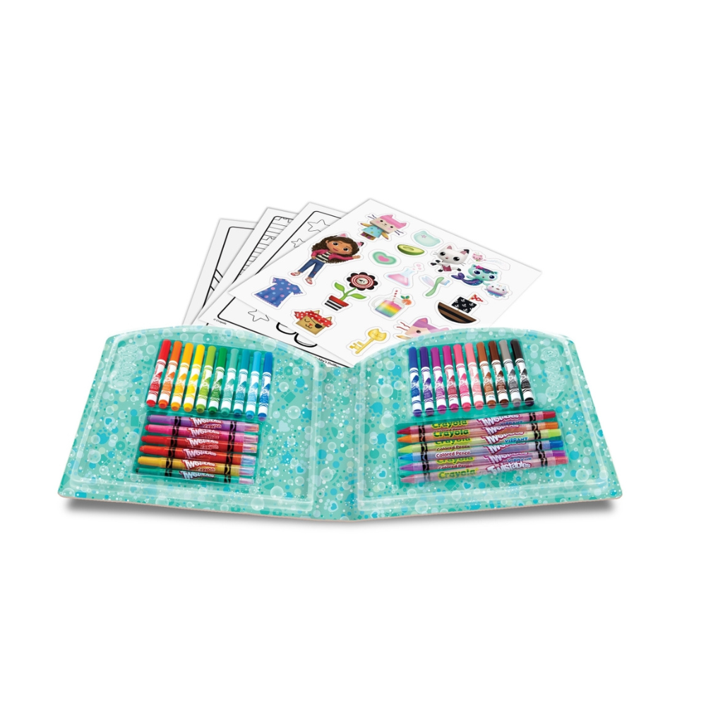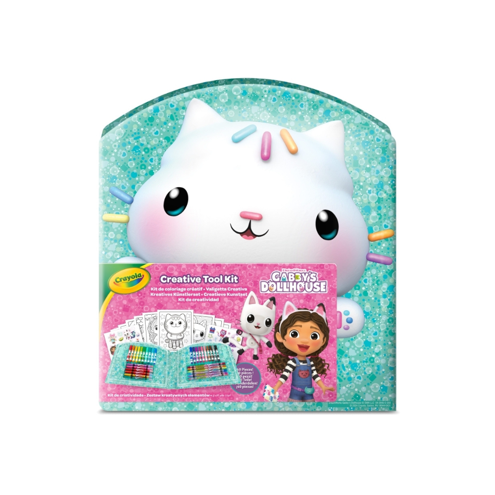 Gabby’s Dollhouse features 8 colorful rooms connected by a sliding elevator. Each room is filled with activities. For example, kids can bake in the kitchen, use a slide in the playroom, get creative in the art room, play piano in the music room, pamper themselves in the bathroom, take a nap in the bedroom or head to the rooftop for a party on the rotatable dance floor. Kids share their adventures with 4 popular characters from the show: Gabby, Pandy Paws, Cakey and MerCat.