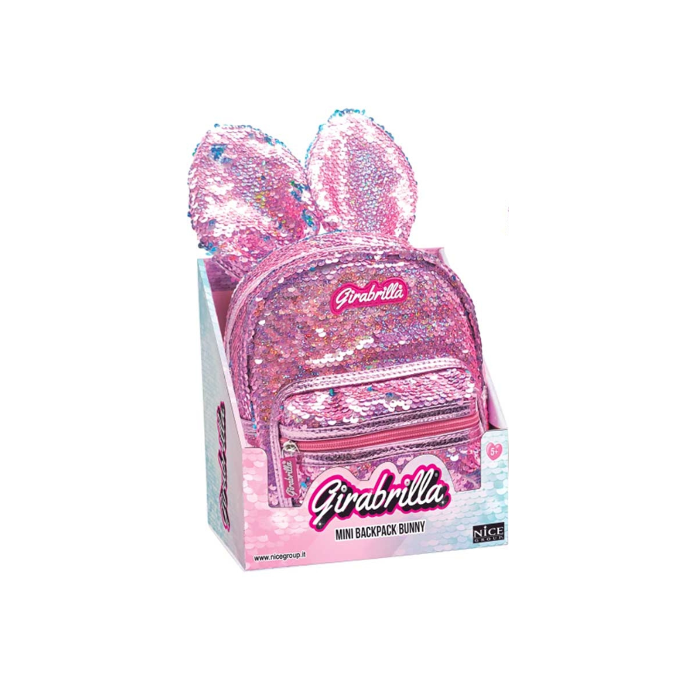 Sparkly backpack with sweet bunny ears, covered with a layer of sparkly reversible sequins.