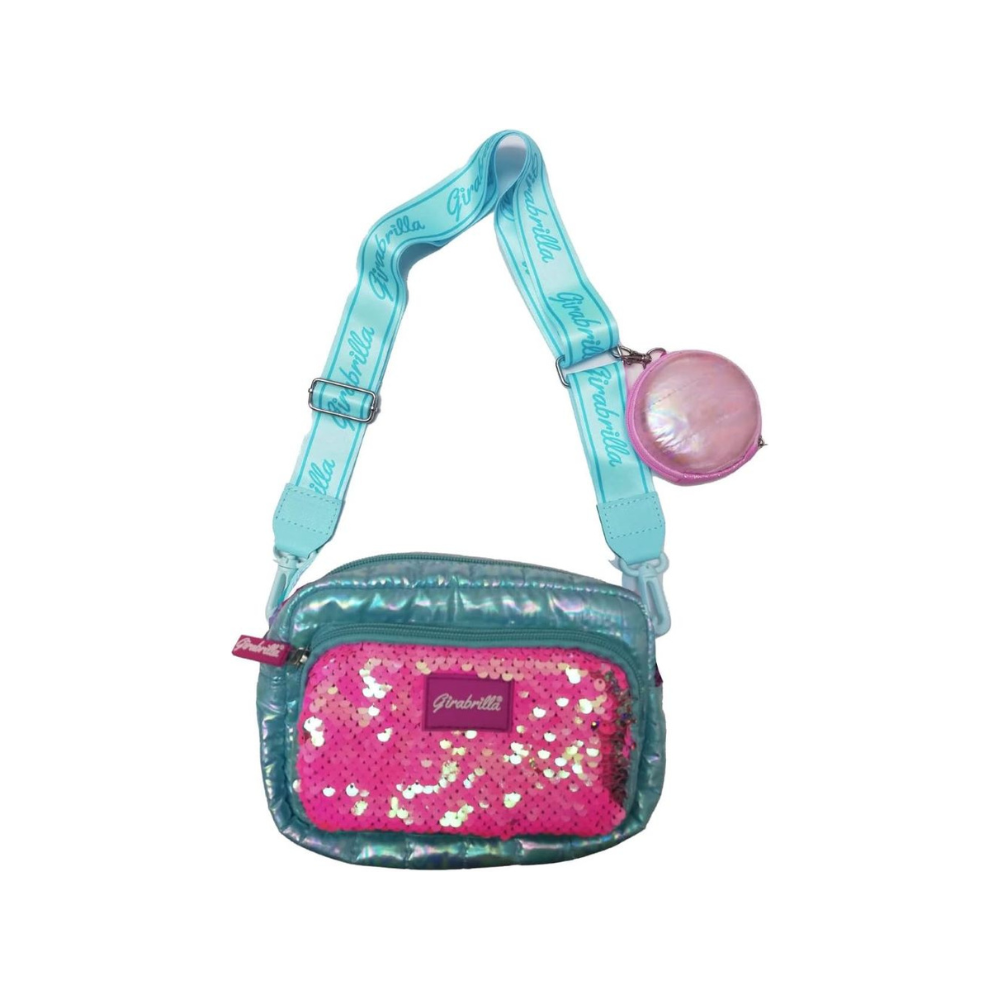 FEATURES: the Puffer Borsa Pochette has a front pocket with a zipper opening, in sequins that change color, and the main compartment has a zip closure. The lining of the bag is in waterproof nylon fabric. The coin purse is covered in soft fabric with a zipper closure and a snap hook to be attached to the shoulder strap.