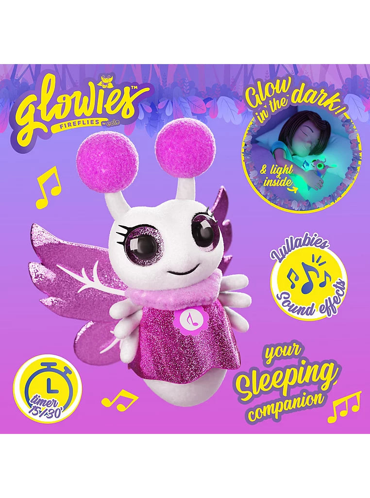 The cuddly Fireflies that offer a magical bedtime experience. These ultra-soft companions not only glow in the dark but also serenade your child with soothing lullabies and gentle sounds