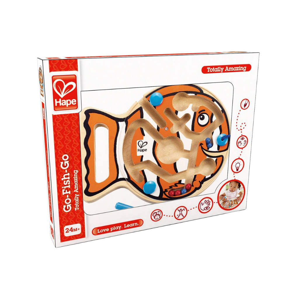* ENDLESS MAZE EXPLORING FUN: Guide the beads with the magnetic wand through this friendly fish bead maze puzzle toy* DEVELOP FINE MOTOR SKILLS: Build and improve early childhood development skills with refined logic and problem-solving skills as well as key motor skills in children 2+ years* DURABLE: The maze puzzle is made of high-quality wood which means the Go-Fish-Go is a friendly companion toy for life* CONVENIENT: This fish-shaped bead maze features a carrying handle, which makes it an ideal travel toy* SAFE TO PLAY WITH: Pieces are enclosed and fixed for your safety and convenience, and its sturdy wooden materials and transparent plastic cover keep the beads in place and secure. This wooden puzzle is finished with non-toxic paints which is safe and won¡¥t fade