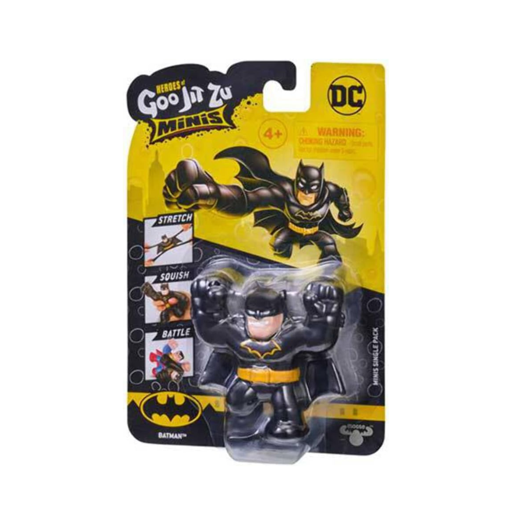 Heroes of Goo Jit Zu DC Minis is an all-new way to play with Goo Jit Zu! Smaller in size but big in stretch and squish, DC Heroes are Goo filled and ready to battle. Each Mini DC Hero can stretch their amazing bodies up to 4 times their actual size. Stretch and wrap them around each other to watch them battle as they go back to their original shape and size. There are eight Super Stretchy Mini Heroes to collect. Multiple DC Heroes are available in this Mini Goo Jit Zu range including Batman, Superman, The Joker, The Flash, Aquaman and Cyborg. Plus look out for the rare Metallic Superman and Ultra Rare Gold Batman!
