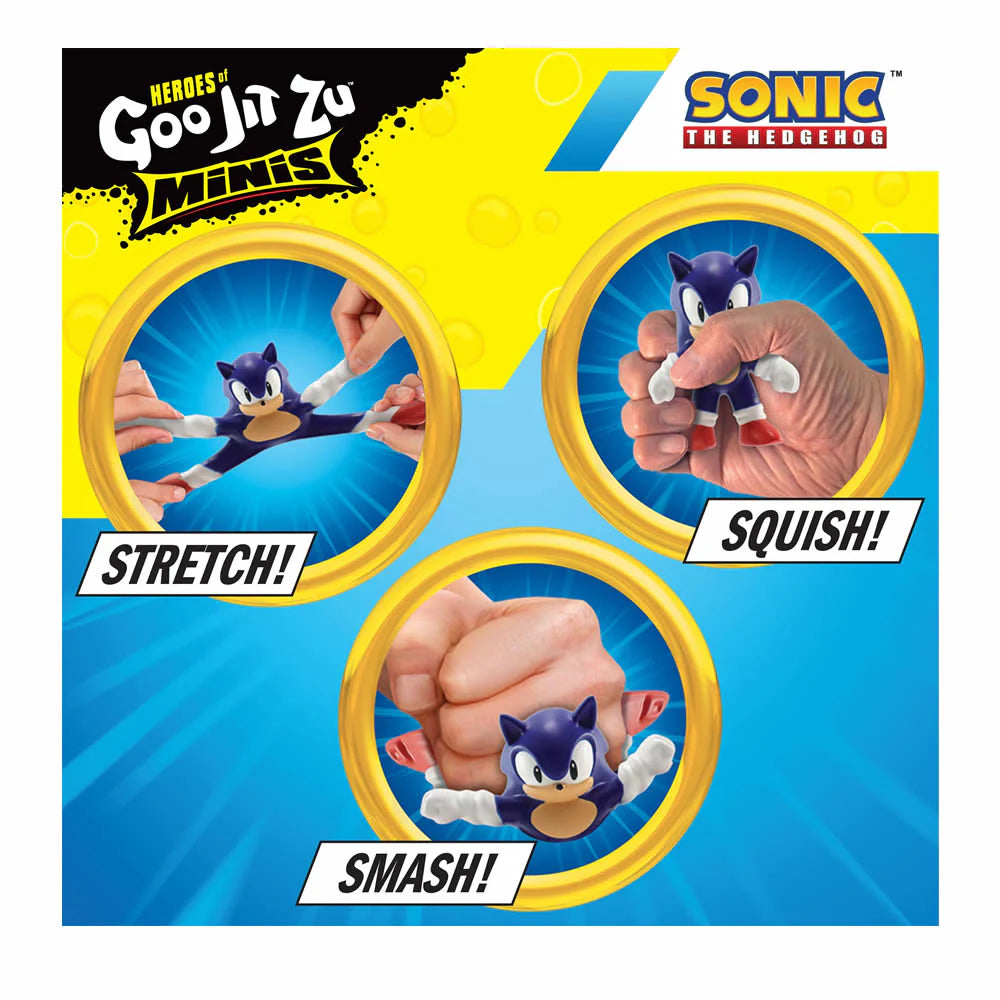 Heroes of Goo Jit Zu Sonic the Hedgehog Minis are here with all-new characters to stretch, squish and play with! These mini, stretchy versions of your favourite Sonic the Hedgehog characters are a great way to play with Goo Jit Zu! Small in size at just 2.5 inches tall but big in stretch and squish. Each Mini Sonic the Hedgehog figure can stretch their amazing bodies up to 4 times their actual size. Stretch and wrap them around each other to watch them battle and move as they go back to their original shape and size. There are 8 new Super Stretchy Mini Figures to collect.