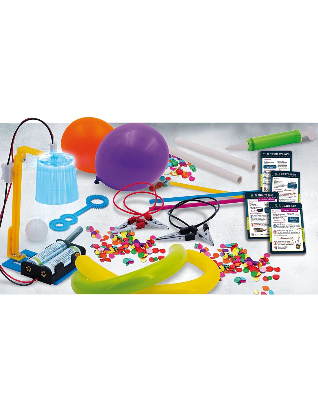 This fabulous home electricity-science science kit from the I’m a genius line, includes the principles of static electricity to bulb operation with so many easy and safe experiments!