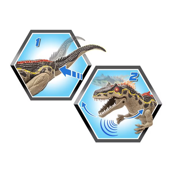 An interactive dinosaur figurine to take a leap in time and fall back into the middle of the Jurassic period. This large Tyranosaurus dinosaur figurine has sound and light effects that immerse your child in prehistoric times to imagine many stories: