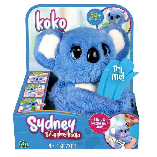 Koko has no less than 50 sound and light reactions , to make it even cuter its cheeks turn pink , but, like a real koala, it is especially capable of clinging to your child’s arm to cuddle it . By stroking it, your child will make Koko purr , they can also tickle it to make it laugh. Koko will truly be able to express its needs and its mood !