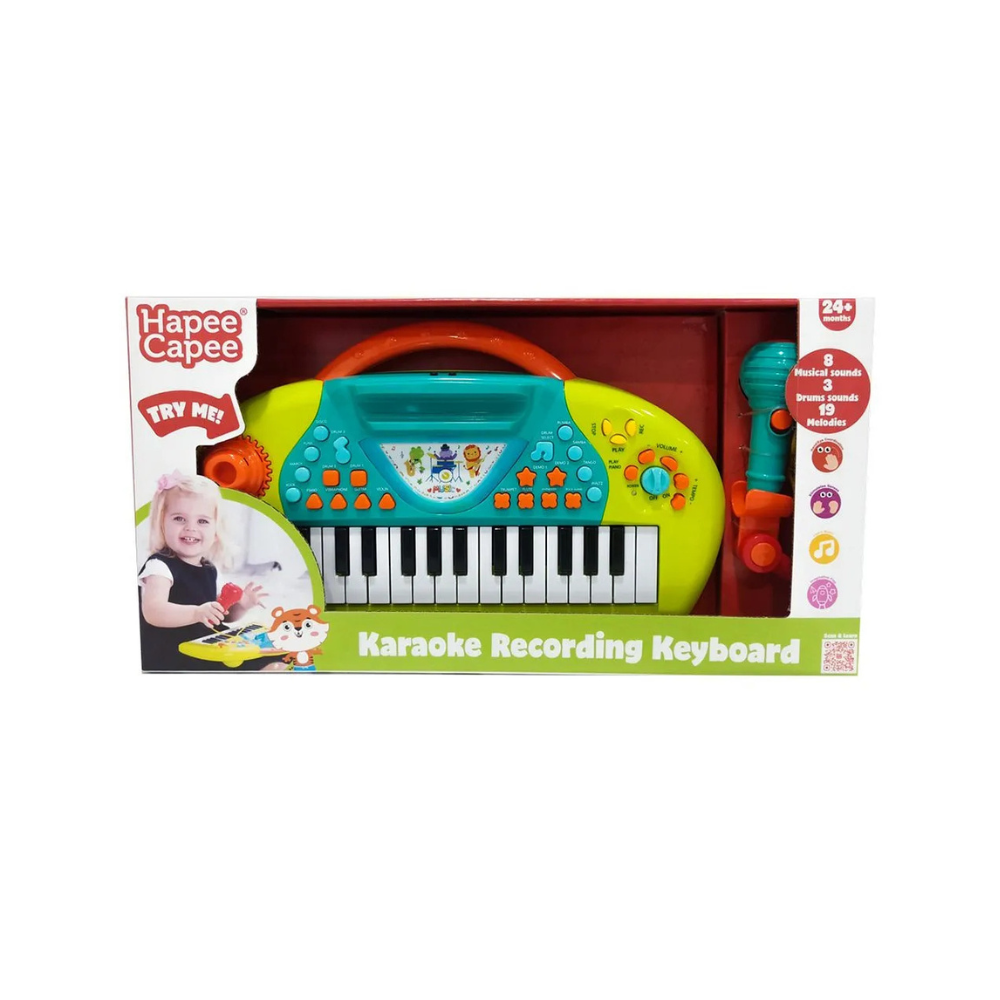 HapeeCapee Karaoke Recording Keyboard combines musical fun with recording capabilities. It allows children to play and record their own music, enhancing creativity and musical skills. Comes with built-in tunes and sound effects for a complete experience.