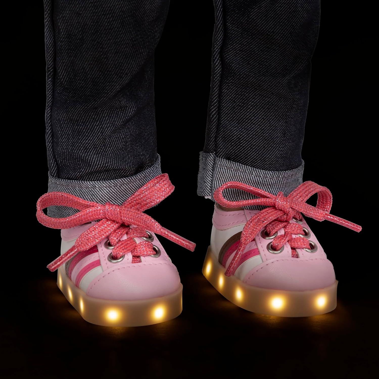 Rainbow Delight; these shoes really light up! Brighten up you 46cm dolls outfits with these light-up sneakers