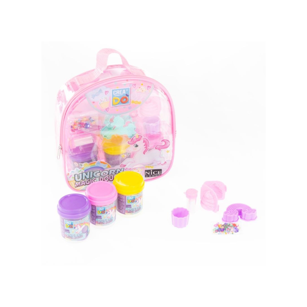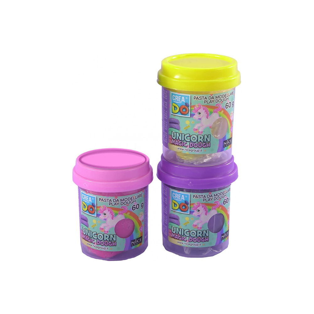 Modeling clay set with 3 jars x 60 g of mixed colored clay, 1 stencil, 2 modeling tools, small 3D dinosaurs and silicone molds…Everything to create your own magical world!