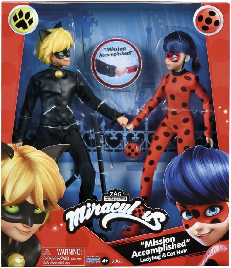 Set of 2 fashion dolls from the Miraculous series, Ladybug and Cat Noir