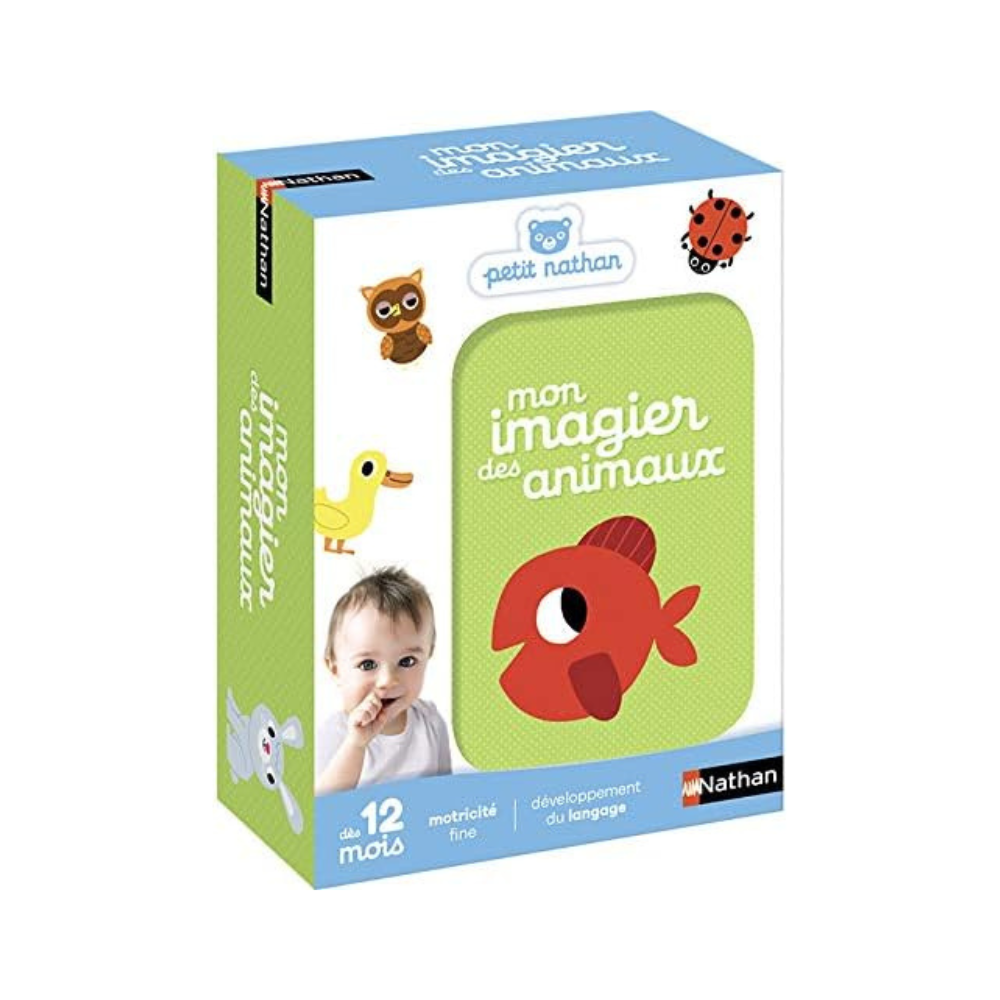 A first picture book that the baby can easily grab thanks to the ring. One object per card for clear recognition.