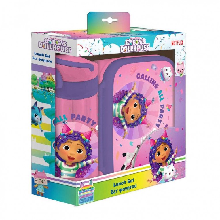 Set Lunch Box Container PP Plastic 800ml and Water Canteen PP Plastic 500ml Gabbys Dollhouse (000574113)