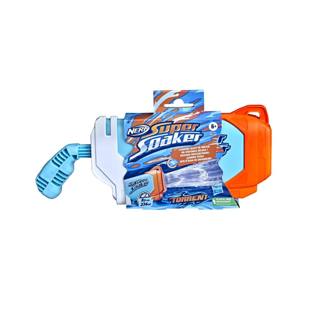 Soak your targets with a flooding blast of water from the Nerf Super Soaker Torrent water blaster! Storm into backyard battles with this Super Soaker blaster that’s easy to fill and fun to fire. Put the front of the blaster in water and pull the plunger handle back to fill the tank, then push the handle forward to shower everyone with a flood of water. It’s a great size for fast-moving outdoor games and easy to use, so kids, teens, and adults can all join in the fun. The Torrent is great way for everyone to get outside, get active, and get soaked! Tank capacity is 8 fluid ounces (236 milliliters). The Nerf Super Soaker brand has been pouring on the fun since 1989 and continues to drench everyone with water-blasting mayhem! Head outdoors for extreme soakage with Nerf Super Soaker blasters! Nerf Super Soaker and all related properties are trademarks of Hasbro.