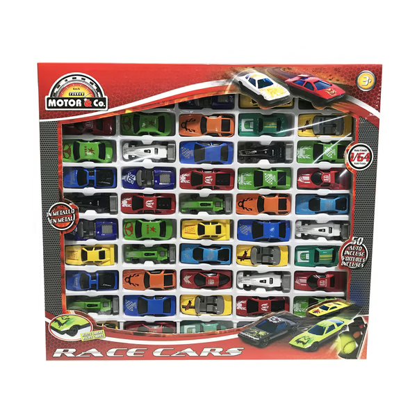 Motor & Co – Pack of 50 mini racing cars , a set of 50 metal mini cars at 1:64 scale.