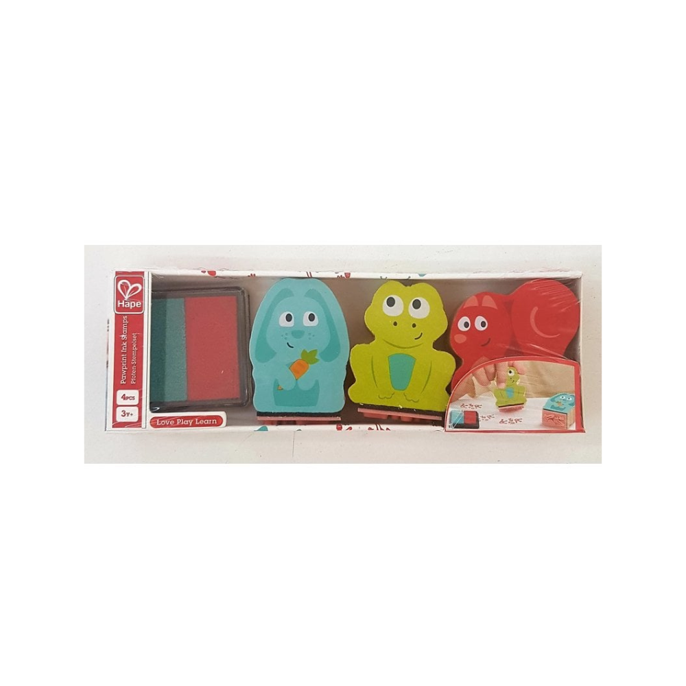 Hape Pawprint Ink Stamps Decorate books, drawings, bags, anything you like with these animal paw-prints which are 100% non-toxic. Bunny, Squirrel, Frog.