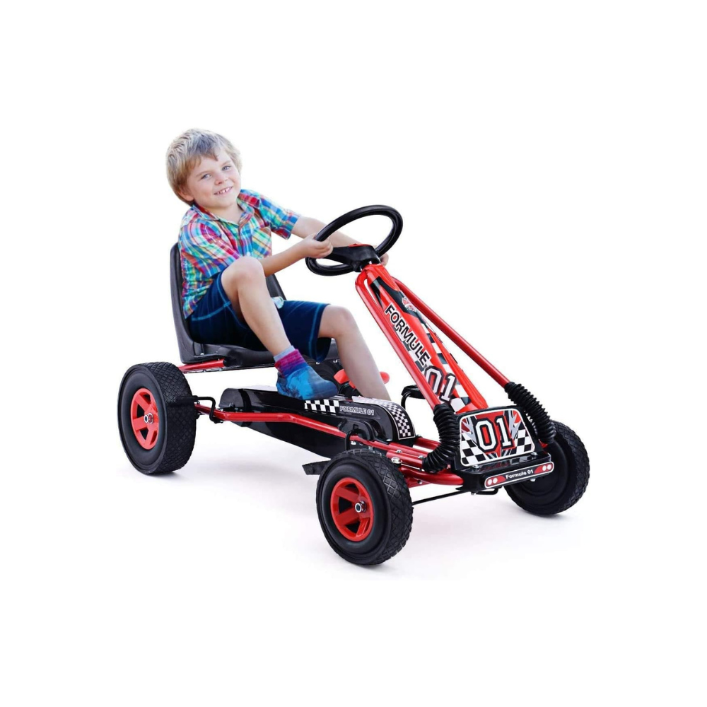 The kart has 4 inflatable rubber wheels, ideal for driving on different types of terrain. The kart is equipped with an adjustable seat to adapt to the size of your child and 2 pedals. Thekart is an ideal outdoor game to develop children’s physical abilities, to stimulate their motor skills from 3 years old and their hand-eye coordination.