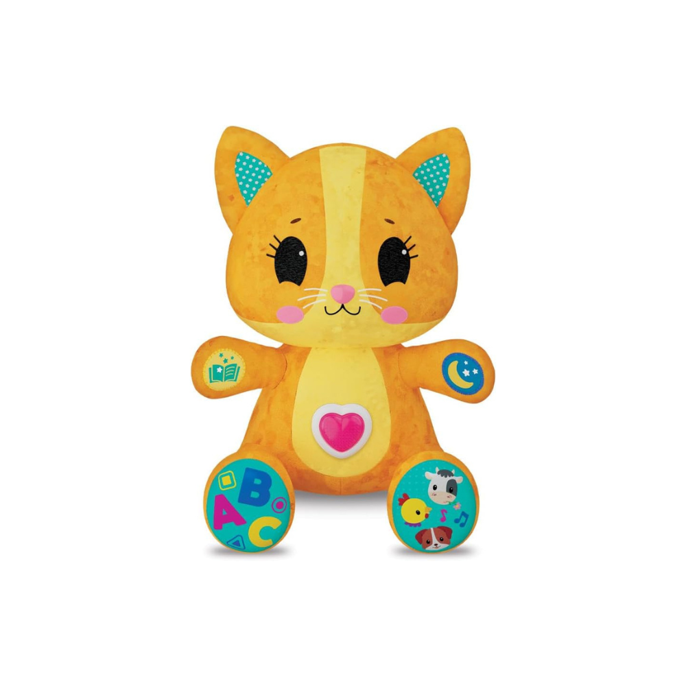 Take a closer look at this charming little plush kitty. Interactive play with this cute toy ensures fun entertainment and learning fun. By squeezing the toy’s light-up tummy and soft paws, baby can enjoy a fun mix of farm animal sounds, listen to fairy tales and sweet lullabies, and even sing along to popular songs.