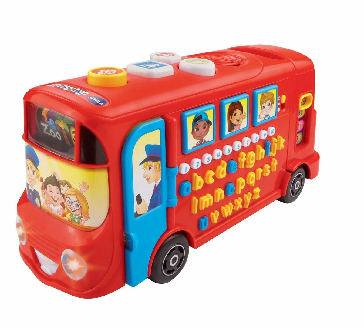 Includes over 100 interactive curriculum questions. Teaches phonic sounds, letters, vocabulary, numbers, counting and safety rules. Features over 30 lively melodies, songs and fun bus related sounds effects. Includes 26 letter buttons, 1-10 number buttons, brake, horn & driver buttons and an open & shut door. Encourages language development, basic maths skills and discovery & exploration. Batteries required: 2 x AA (included).