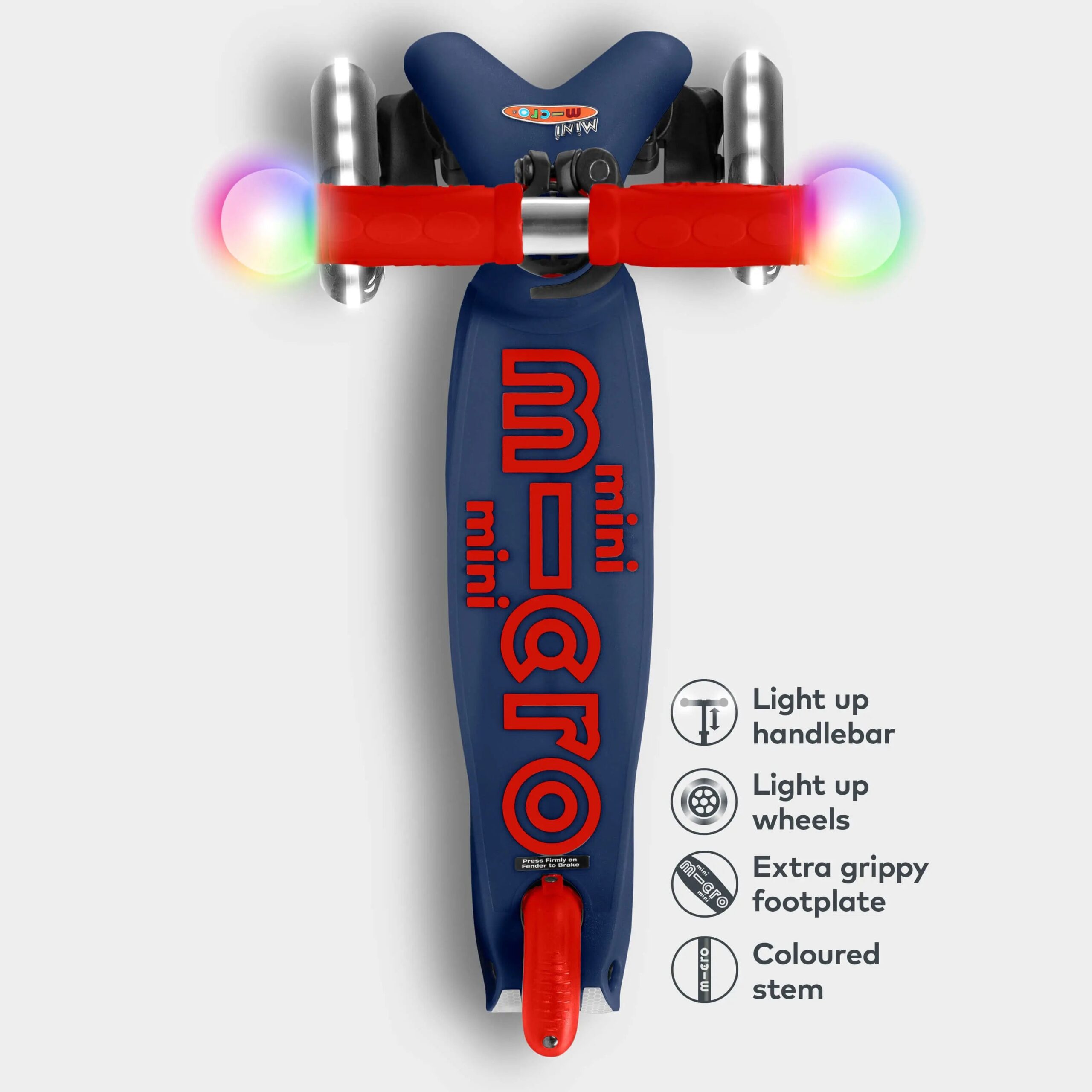 Mini LED scooter with magical light effects for young riders.