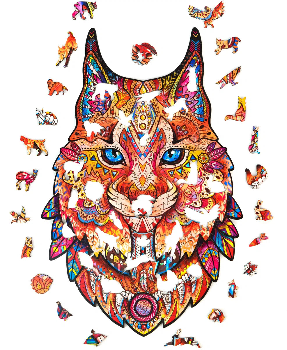 Wooden puzzle featuring a gentle lynx design for animal-themed fun.