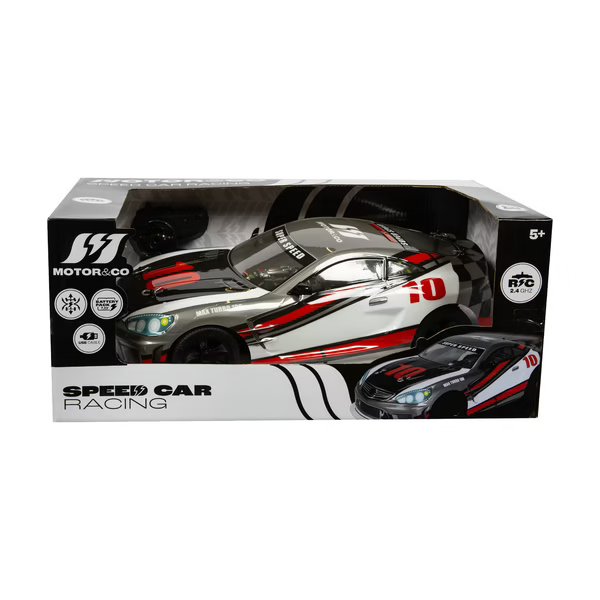 Racing Speed Car 1/10 is a large-scale remote-controlled racing car built for speed and agility. Designed for competitive racing, it features responsive controls, durable wheels, and a sleek design. Perfect for ages 6 and up, this R/C car brings the excitement of the racetrack to playtime, allowing kids to develop their driving skills and compete in thrilling races with friends or family.