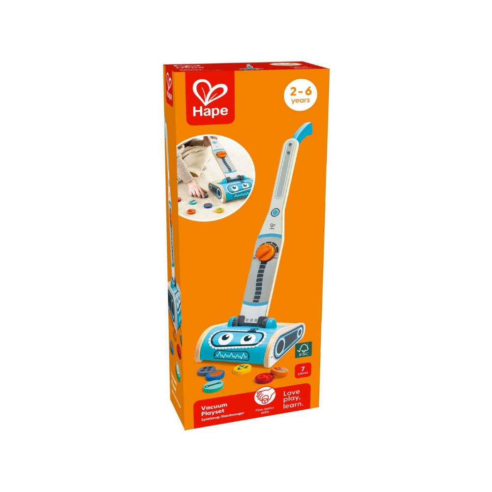 The vacuum cleaner features a robot face to make this toy even more exciting.