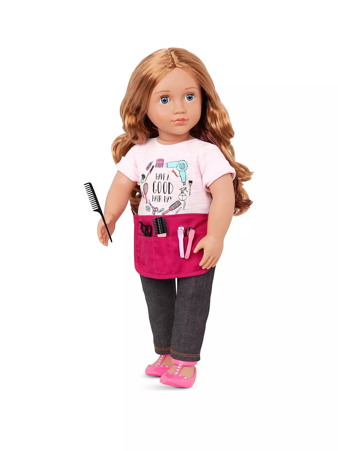 Hairdresser Doll 46 cm – Sabrina is a stylish 46cm doll who loves to create fabulous hairstyles. Dressed as a hairdresser, Sabrina comes with soft, easy-to-style hair, encouraging kids to practice hairdressing skills. Her detailed features, high-quality clothing, and movable limbs make her perfect for role-play. Suitable for ages 3 and up, Sabrina brings the fun of a salon to every play session, fostering creativity and nurturing skills.