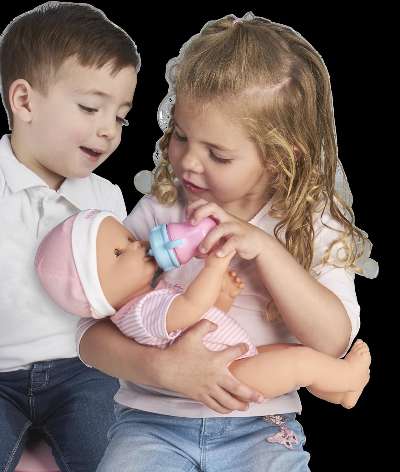 Nenuco Sara can:1) Eat, 2) Drink from her bottle, 3) Pee, 4) Get diaper rash (you can remedy it in no time by rubbing Nenuco’s butt!), 5) Cry real tears, 6) Drool, 7) Take a bath, 8) Move her arms and legs, 9) Pee in her potty, 10) Close her eyes for sleeping, 11) Smell like a real baby. She comes with 9 accessories to help with her care, from diapers to toys and she is dressed in a soft pink pajama with her name on it that you can easily remove for a relaxing bath!. Born to be loved! Since 1977, Nenuco has been creating endearing moments with their beloved baby dolls. Nenuco offers a complete universe of baby dolls, accessories, and clothing developed for little ones. With Nenuco baby dolls, children will enjoy special moments that will make their imagination and social skills soar.