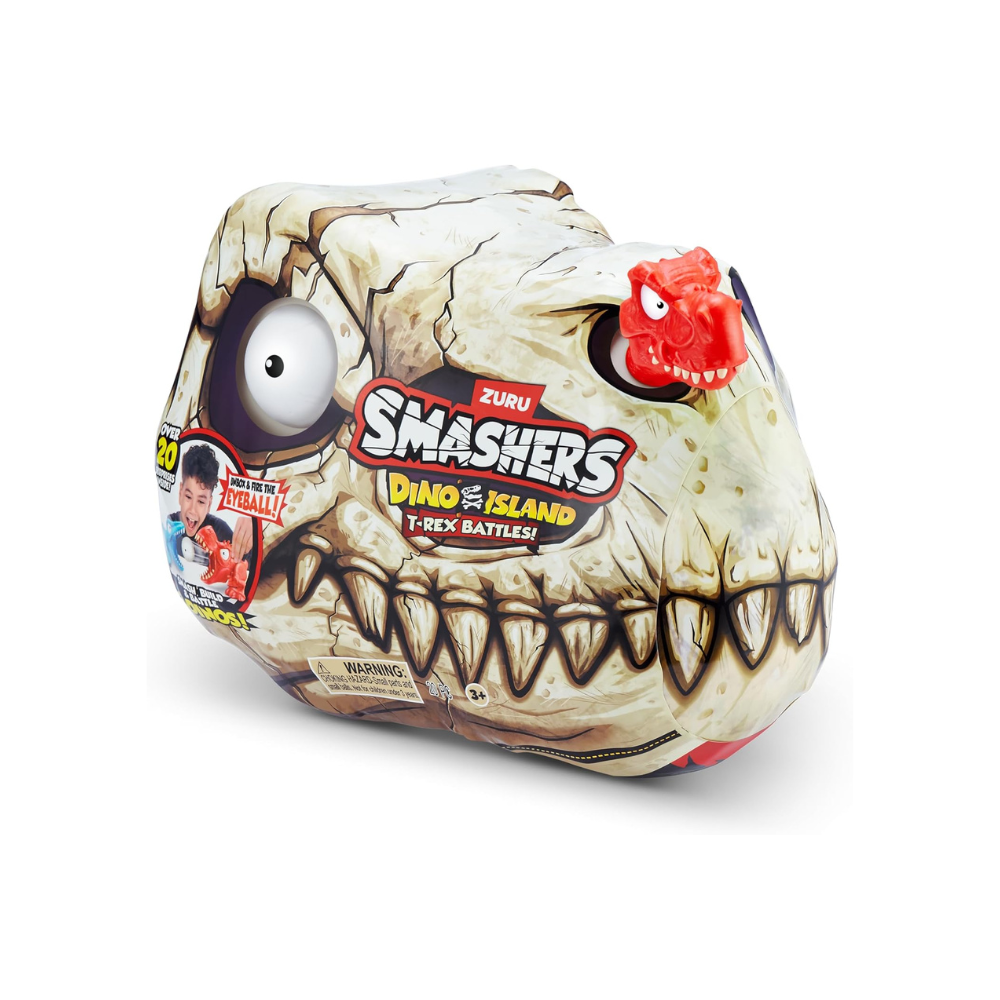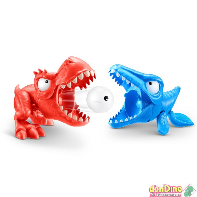 Attach the light-up eyeball to one dinosaur’s mouth and pull the tail trigger to propel it at the other dinosaur and watch it explode in smashing action!
