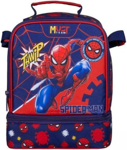 A Must school lunch bag with a Spiderman theme. Made of insulated material to maintain the temperature of the food.