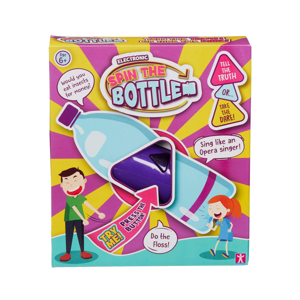 The Electronic Spin the Bottle Game invites players to Spin the Bottle then choose whether to Tell the Truth? Or Take the Dare? With built-in lights, sounds and special effects to add to the fun. No need for instructions simply press the button, Spin the Bottle then wait for the Games Host to deliver the Truth or Dare!Sing Happy Birthday like an Opera Singer! Sniff the socks of the player next to you! Do the Floss! Who is your favourite person here? Who tells the worst jokes? Who is the best-looking celebrity?With over 120 different challenges, dares and truths to discover there’s hours of fun to be had with this addictive and hilarious family game! Play one-on-one or in Teams. Who has the skills to rise to the Challenges or guts to tell the Truths? Suitable from 6 years.