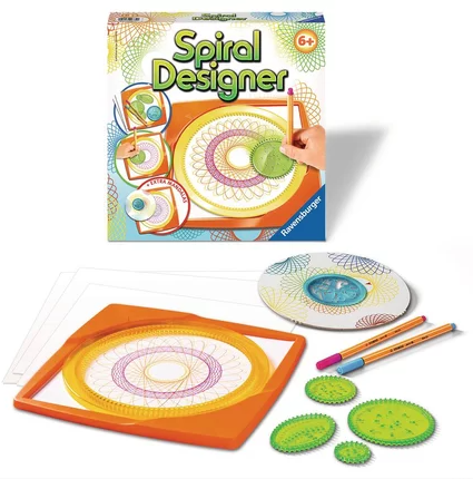 Whether you create spirals in one color or combine different patterns – the Spiral Designer offers endless possibilities! Place a white sheet of paper between the drawing frame and the templateChoose one of the gears and the drawing fun can begin