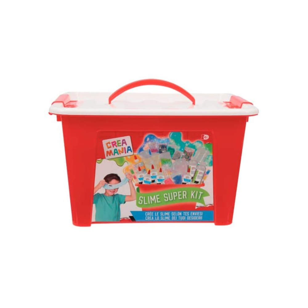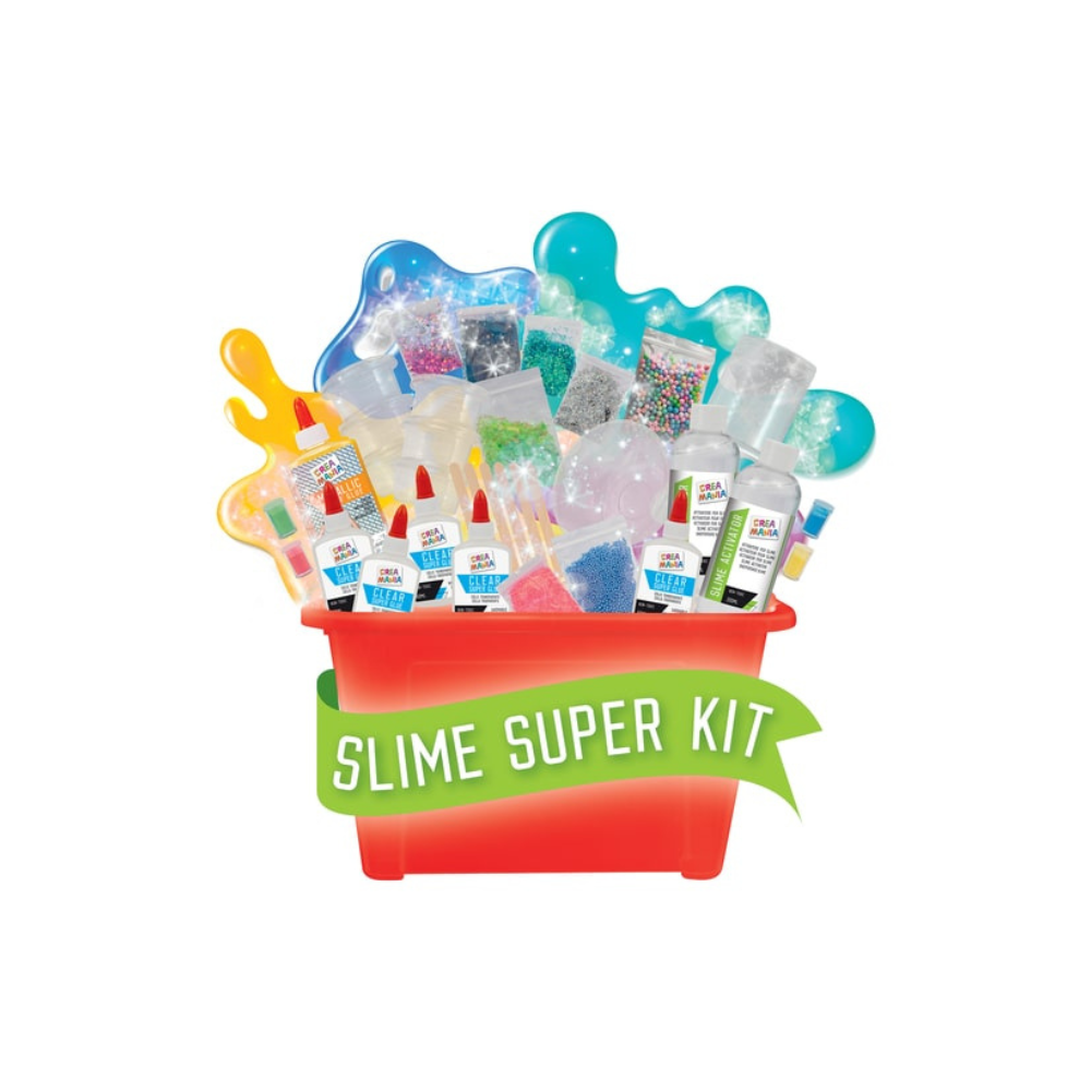 All the ingredients for making slime are stored in a large plastic box for easy storage and transport of your kit.