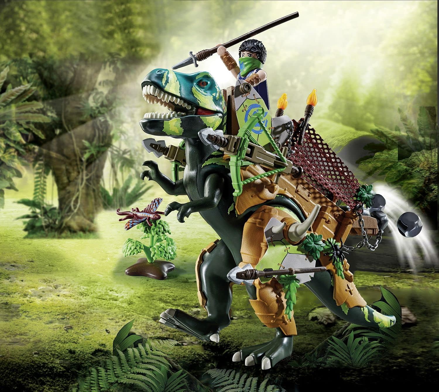 This camouflaged T-Rex comes equipped with two cannons, one on each of his sides.