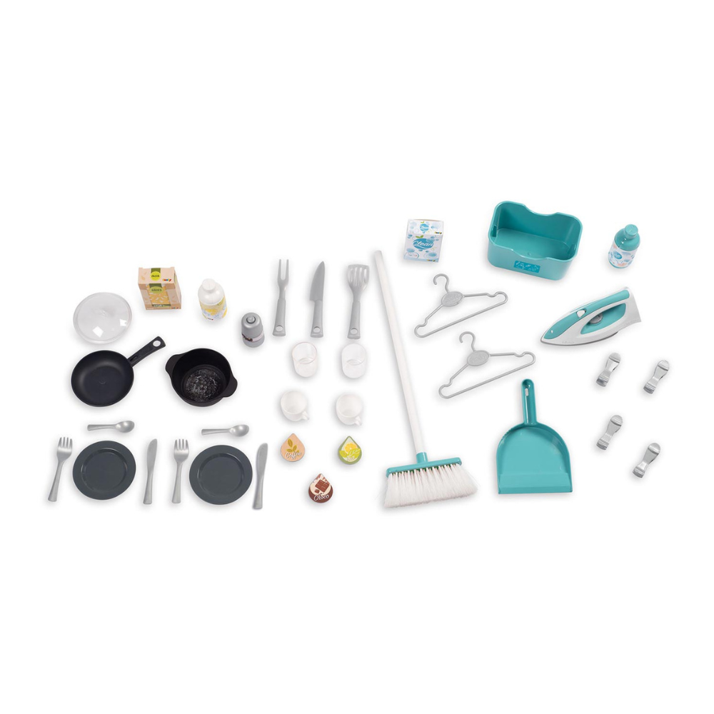 Several areas have been designed to make the game last: sink with tap, oven, fridge, hood, coffee machine, soda machine, hob with sound functions… But the kitchen also includes a washing machine with an opening door and drawer containing 2 compartments for detergent and fabric softener. A cric crac function allows you to program the washing cycle! Your children will also be able to find a clothes horse, a laundry basket and an ironing board. For maximum fun, the Tefal Clean kitchen is sold with many accessories including 1 frying pan, 1 BBQ cluster, 1 saucepan, 2 cups, 2 glasses, 2 plates, 2 knives, 2 forks, 2 spoons, 3 capsules including 1 frying pan, 1 BBQ cluster, 1 saucepan, 2 cups, 2 glasses, 2 plates, 2 knives, 2 forks, 2 spoons, 3 coffee capsules, 1 salt and pepper shaker, dummy boxes, 1 broom, 1 shovel, 2 hangers, 4 clothes pegs and 1 iron with mechanical functions. Worktop height: 50cm. The sink does not come out of the water.